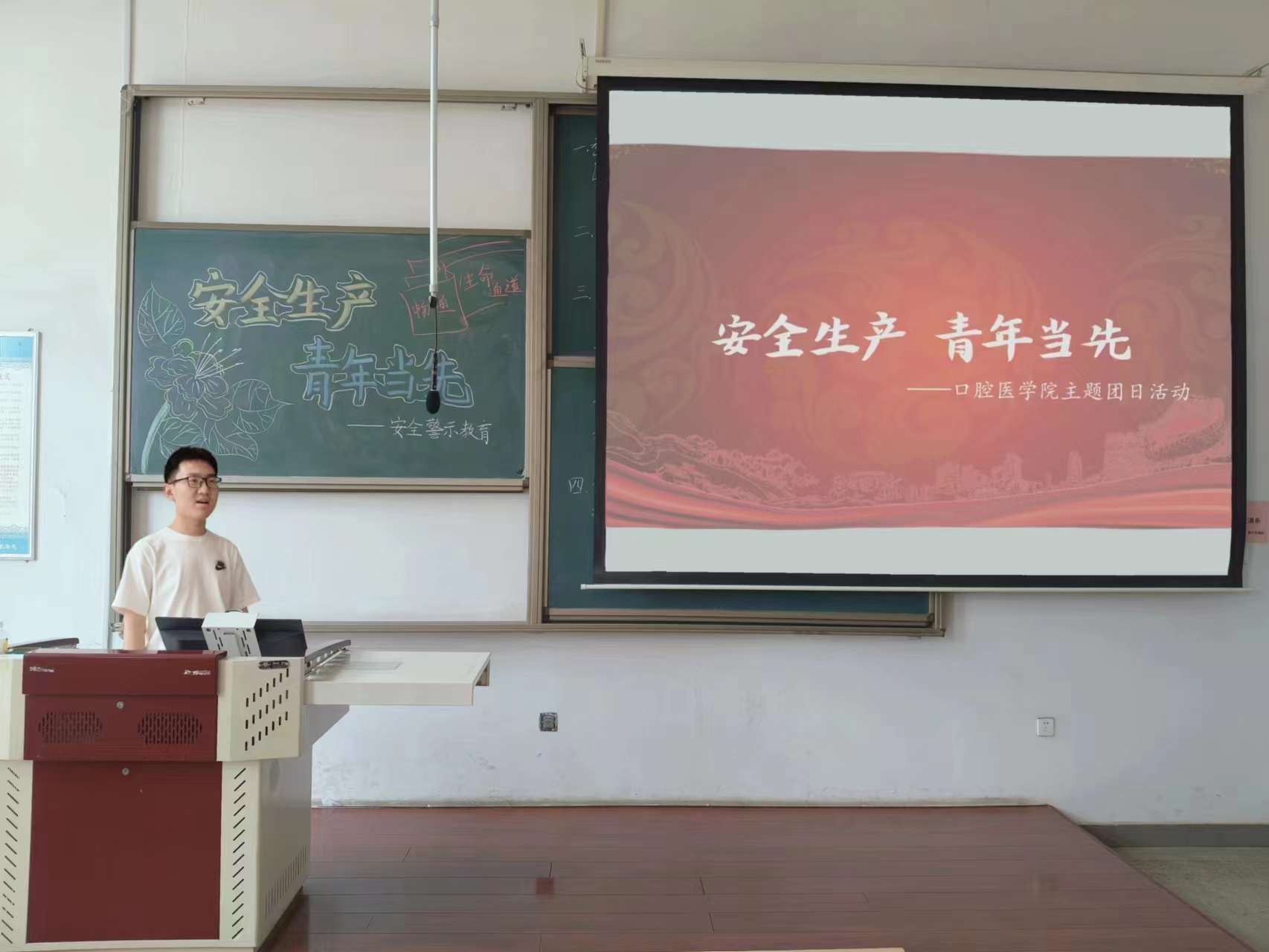 6月11日,我院在中都校区慎思楼B205教室开展“安全生产,青年当先”主题团日活动,口腔医学院的青年学子积极参与此次活动。