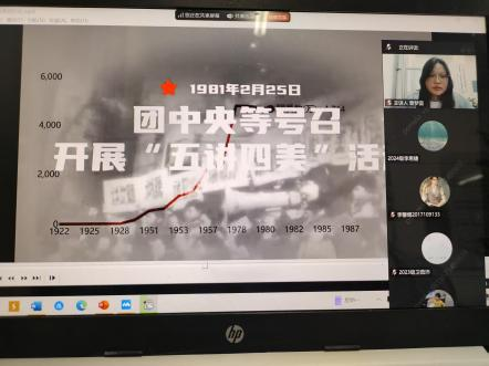 曾梦圆老师通过展示精心整理的文字、图片资料,讲述了社会主义建设时期广大团员青年积极投身国家建设、发挥先锋模范作用的故事,以及改革开放浪潮中,共青团引领青年勇于创新、参与经济社会发展的典型事例,让大家深刻感受到共青团始终与时代同频共振、奋勇向前的精神风貌及其在国家发展进程中的重要推动作用。