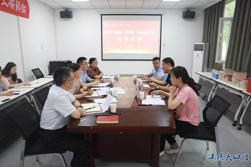 6月30日上午,我校党史学习教育巡回指导组任胜利、孙俊红、郭晔一行3人到我院督导检查党史学习教育、学生就业率和执业医师通过率相关工作,我院党委书记任秀云,党委副书记、副院长李冰,纪委书记秦海云,副院长张芳参加会议。