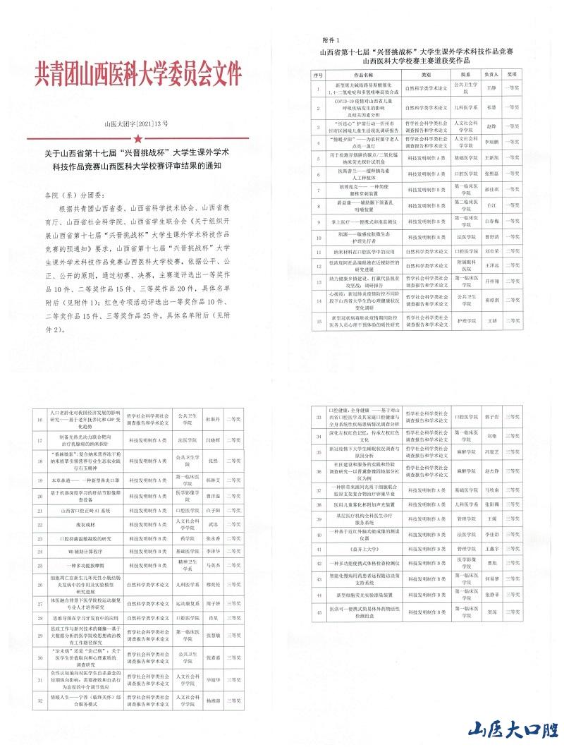 我院在山西省第十七届“兴晋挑战杯”大学生课外学术科技