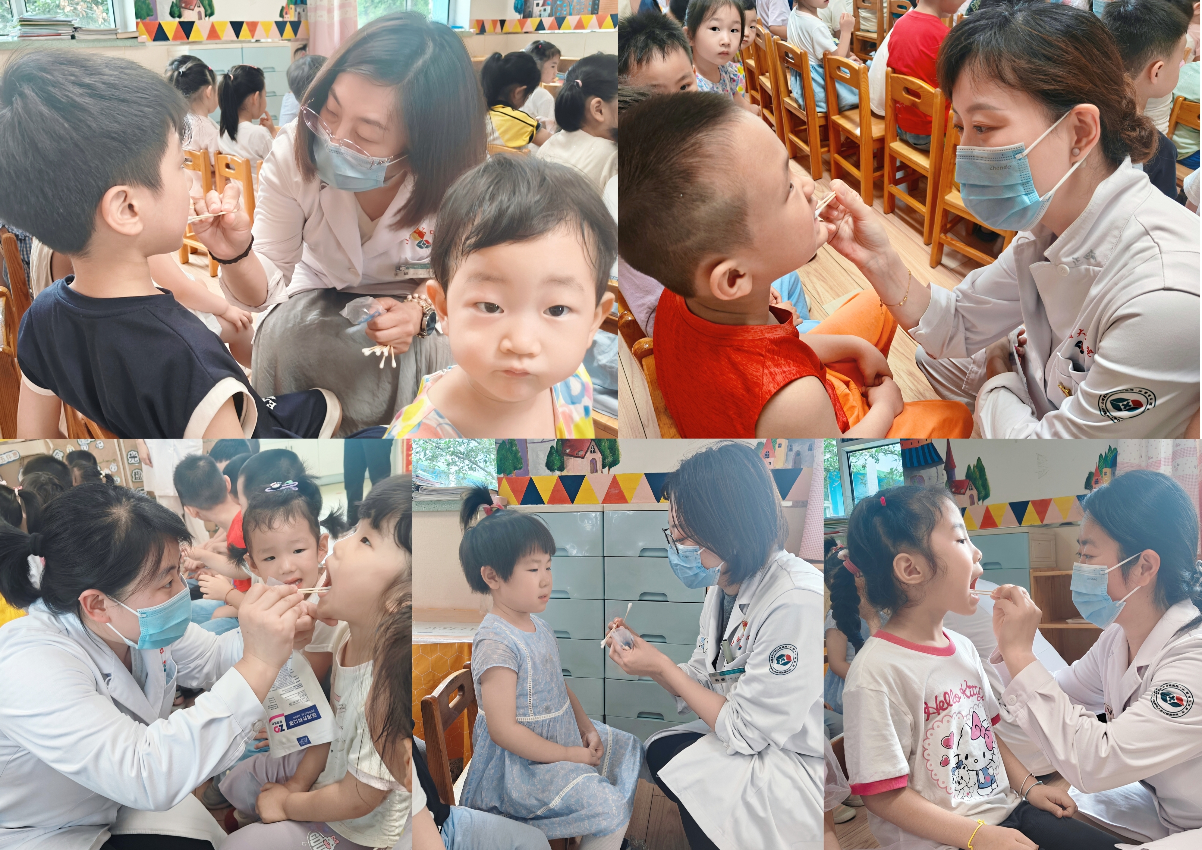 正畸科任娟副主任医师、马艳宁副主任医师,荆璇、郝俊玲、薛美荣医生为幼儿园小朋友们进行一对一口腔检查。医生们耐心细致地查看每个孩子的牙齿状况,并针对发现的问题给予了个性化的早期干预建议,将关爱融入每一个检查细节。