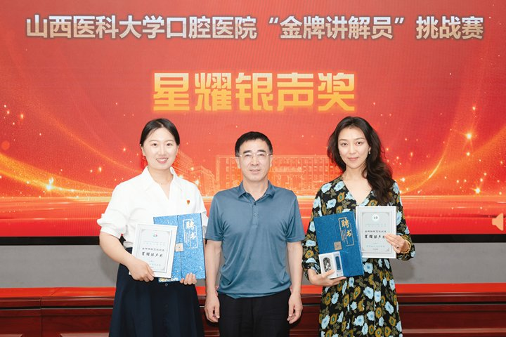 赛事创新采用“双角色挑战”模式 :选手需自主选择“专家考察”或“领导调研”场景模拟展开5分钟限时讲解。经评审团综合评定,口腔全科王子同、人事科乔莎、手术室刘卓卿、导诊安倍暄、黏膜科吴淑娟5名选手脱颖而出,获聘院级讲解员,未来将承担医院重大讲解任务;其余10名选手纳入科室宣传员储备库,负责挖掘一线宣传素材。赛后,评审团为获奖选手颁发聘书及奖牌。