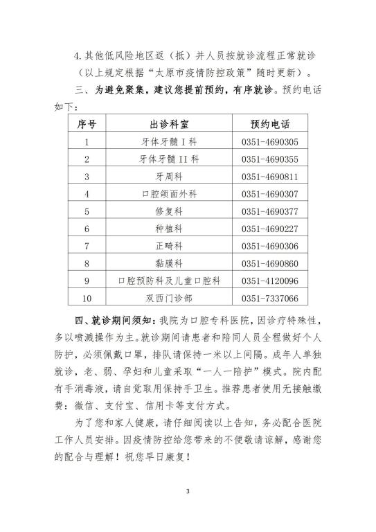口腔修复科0351-4690377    口腔种植科0351-4690227    口腔正畸科0351-4690306    口腔颌面外科0351-4690307