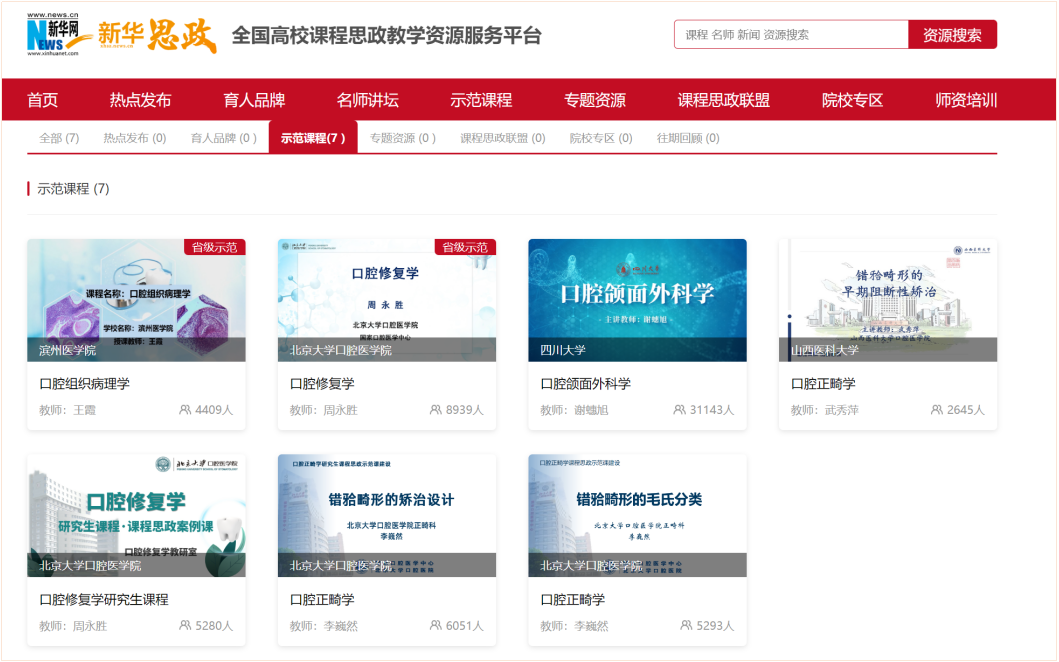 图19 《口腔正畸学》课程在“新华思政”——全国高校课程思政教学资源服务平台上线