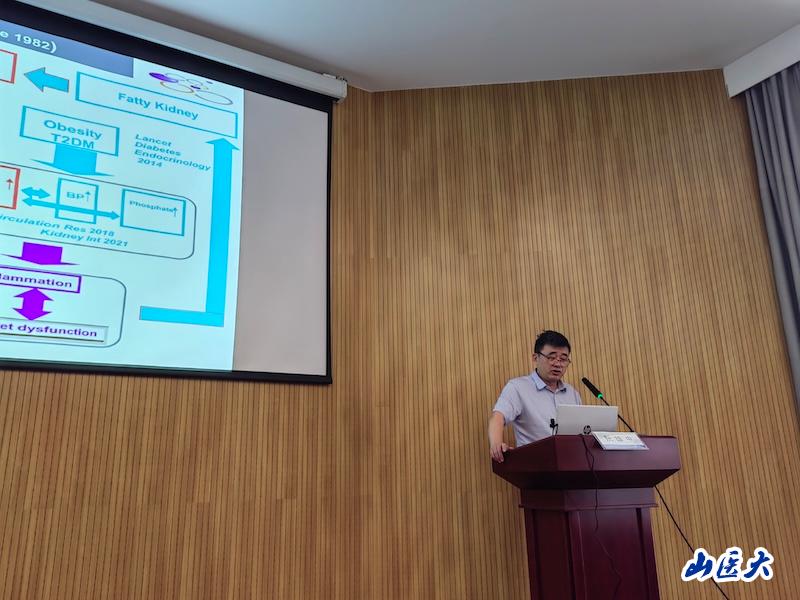 8月6日,受细胞生理学教育部重点实验室邀请,重庆医科大学校长助理、代谢病研究院院长、中国生理学会肾脏专业委员会主任委员阮雄中教授来我校指导交流。阮雄中教授做了题为“CD36与代谢相关性疾病”的学术报告,报告会由管又飞教授主持,校党委常委、副校长焦向英,基础医学院院长陆利以及实验室师生参会。阮雄中介绍了自己的学术研究历程,总结了CD36在高血脂症、动脉粥样硬化、脂肪肾等代谢相关疾病中发生发展的作用,并讲解了自己围绕CD36在非酒精性脂肪性肝炎、肝癌、肾脏节律调控方面取得的创新性研究成果。长达90分钟的学术报告让每一位参会者都受益匪浅,阮雄中教授与现场师生展开了热烈的交流讨论。会上,阮雄中被聘为我校基础医学院客座教授。管又飞在总结发言中指出,重点实验室师生要学习阮雄中教授围绕某一领域重大科学问题进行长期、系统研究的范例,不要一味追求当前的研究热点,要在某一个研究领域持之以恒地深耕;要围绕一个重要问题全面、系统地开展科学研究,不能局限于单一的器官和系统。