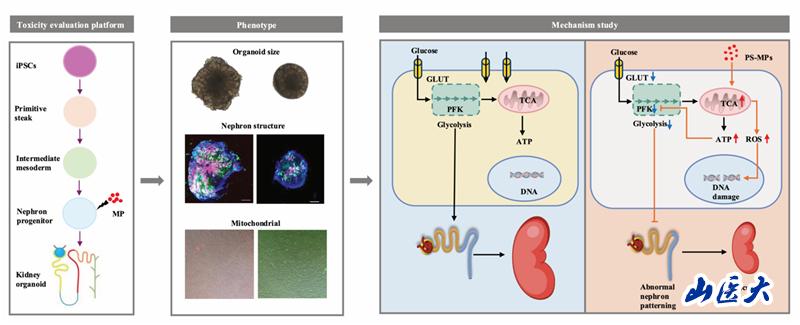 肾祖细胞(NPC)阶段是早期肾脏发育的关键时期。孕期如果接触毒素,很可能导致肾脏先天性异常和肾功能障碍。已有研究表明,微塑料暴露会对成年动物的肾脏和肾细胞系产生肾毒性。然而,孕期微塑料暴露对肾脏发生过程的影响,至今尚无定论。虽然肾细胞系和小鼠模型常被用于微塑料毒理学研究,但这些模型无法精准展现人类肾脏的完整发育过程。因此,来源于人类多能干细胞的肾脏类器官,成为研究肾脏发育和评估发育毒理学的理想模型。