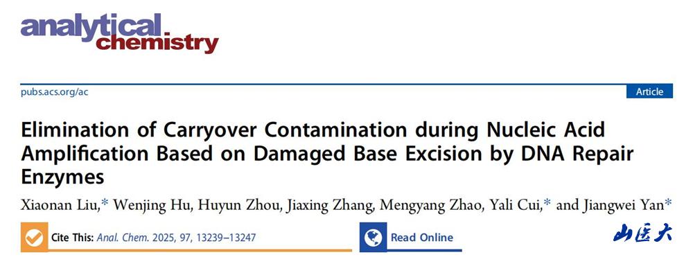近日,我校法医学院严江伟教授创新团队系列研究成果再次刊登在国际分析化学领域顶级期刊《Analytical Chemistry》封面,研究成果以题为“Elimination of Carryover Contamination during Nucleic Acid Amplification Based on Damaged Base Excision by DNA Repair Enzymes”的研究论文发表。