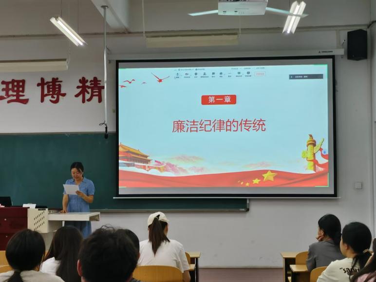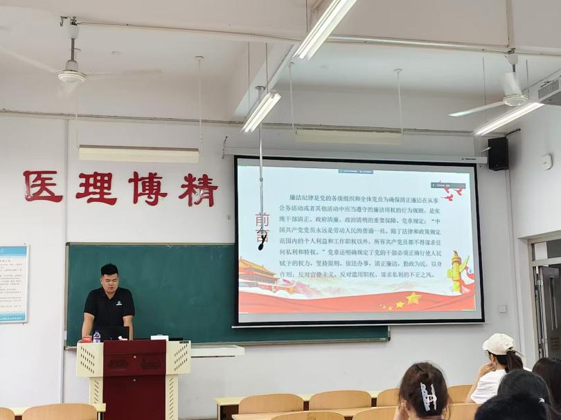 党课的第二部分由马克思主义学院的研究生赵坤主讲。他围绕廉洁纪律的历史展开了讲述,从党的创立之初的艰苦奋斗,到如今的繁荣昌盛,廉洁纪律一直是党的重要法宝。他列举了多个具体案例,生动形象地展示了违反廉洁纪律的严重后果。其中,他特别提到了一种学生违反纪律的行为——购买学分券。这种行为不仅违反了学校的规章制度,更违背了党的廉洁纪律要求,是一种极其不负责任和自私自利的表现。