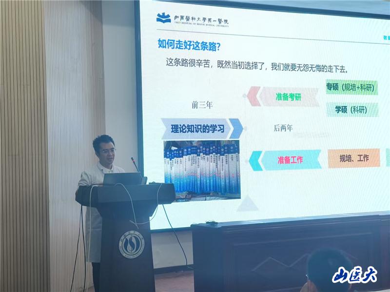 报告中,刘鹏鸿围绕科研动力、科研意义与临床实例三大维度,系统阐述了医学生的科研成长路径。他强调,守护生命的初心是驱动医学生投身科研的根本动力。针对医学生成长,他深入剖析了不同阶段的关键任务:本科阶段需筑牢《生理学》《诊断学》等核心课程基础;毕业后无论是选择专硕、学硕还是规培,科研能力都是不可或缺的核心素养。刘老师结合其团队在青少年抑郁症非自杀性自伤行为领域的突破性研究,生动展示了科研如何服务临床:通过构建数据库、开展实验,为临床诊疗提供了新视角和新方案。他进一步以渐冻症治疗研究等为例,深刻阐释了科研工作者肩负的家国情怀与时代使命。针对临床与科研如何平衡这一普遍难题,刘老师分享了宝贵的实践经验。他倡导从临床实践中敏锐发现问题,利用碎片化时间高效推进研究,形成“临床问题驱动科研探索,科研成果反哺临床实践”的良性循环。同时,他建议学生积极争取科室支持、优化个人培养策略,实现临床能力与科研素养的协同提升。