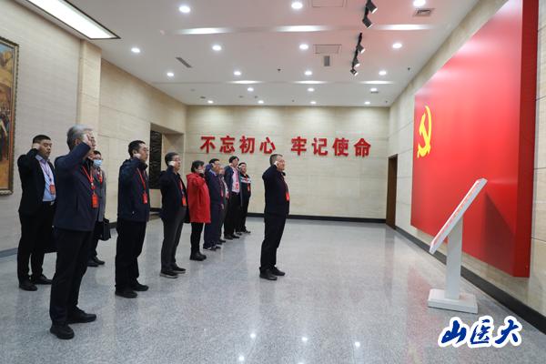 在八路军太行纪念馆,常委们佩戴着党徽,举起右拳,面对庄严的党旗,张俊龙领誓,重温入党誓词:“我志愿加入中国共产党,拥护党的纲领……随时准备为党和人民牺牲一切,永不叛党。”宣誓人:张俊龙、贺培凤、党志峰、王宏伟、徐钧、燕炯、陈显久、张巍……