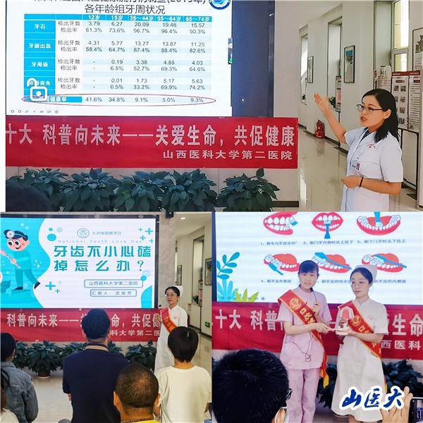 9月16日上午,在第34个“全国爱牙日”来临之际,第二医院口腔科赴杏花岭区鼓楼街道西羊市社区进行了以“口腔健康,全身健康——护牙健齿少年强,健康中国民族兴”为主题的科普义诊活动,11名医护人员参加了科普义诊。