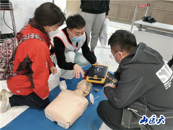 李伟亮老师和尹付连老师为现场群众讲解了白金十分钟理念,演示了心肺复苏、AED操作和婴儿气道异物梗阻急救法,通过讲解,使民众对心肺复苏操作有了更深的了解,旨在着力加强社会自救互救建设,努力普及“人人学急救,急救为人人”的理念。