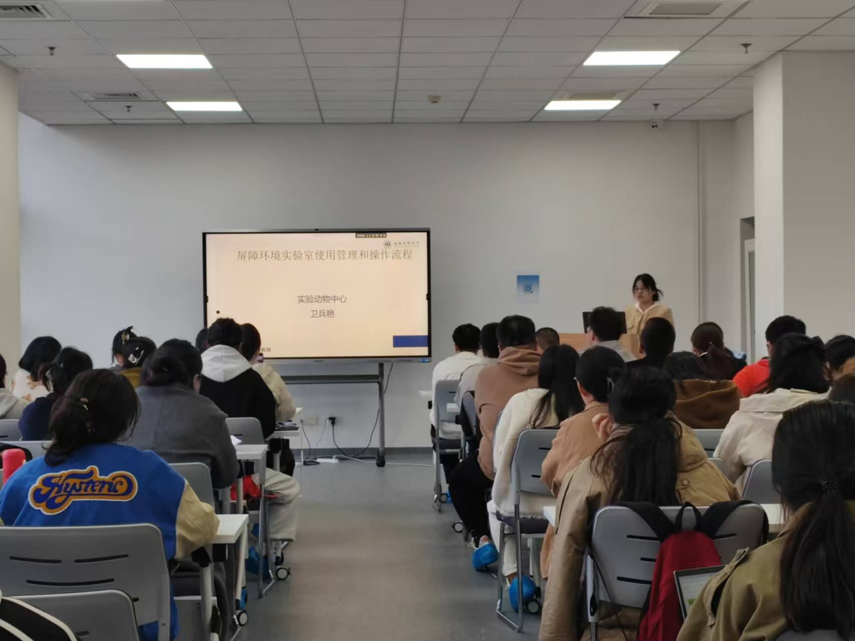 中心宋国华、轩瑞晶和卫兵艳三位老师进行了授课,内容涵盖了实验动物相关政策法规、实验动物福利伦理、动物实验与生物安全、屏障环境实验室的使用四个方面。通过理论讲解、实际操作演示和案例分析等形式,学员们对屏障环境动物实验室的使用有了更深入的了解和认识。