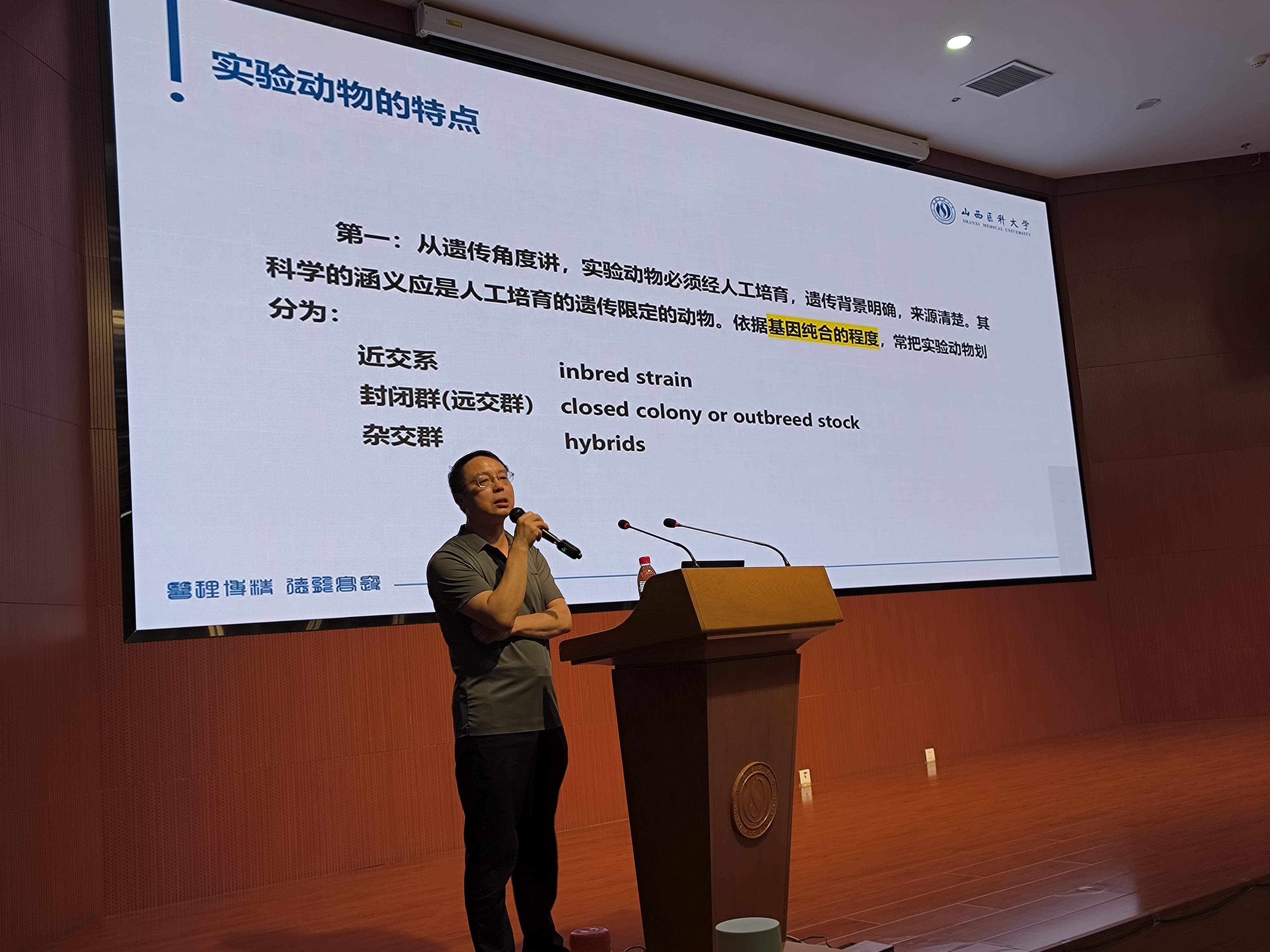 陈朝阳教授从《实验动物管理条例》《实验动物质量管理办法》《实验动物许可证管理》《山西省实验动物许可证实施细则》等,详细介绍了实验动物相关政策法规对实验动物在科研中规范使用要求。阐述了实验动物标准化与遗传、微生物、寄生虫、环境、营养等因素影响动物生长发育,在实验动物使用过程中必须对这些因素进行严格控制,以保证实验动物和动物实验的质量。