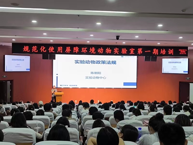 为进一步规范我校实验动物使用及管理,提高动物实验人员的基础理论知识,实验动物中心于7月11日下午在中都校区图书馆多功能报告厅举办“第一期规范化使用屏障环境动物实验室培训班”,357名教师与研究生参加了培训。实验动物中心副主任陈朝阳主持培训会议。