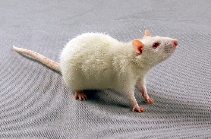 大鼠属哺乳动物。成鼠雄鼠较大,毛色纯白,被毛致密紧披有光泽,头面尖突,嘴脸前部有较硬的触毛,眼大明亮,虹膜呈粉红色;尾上长有短毛和环状的角质小鳞片。寿命一般为2-3年。