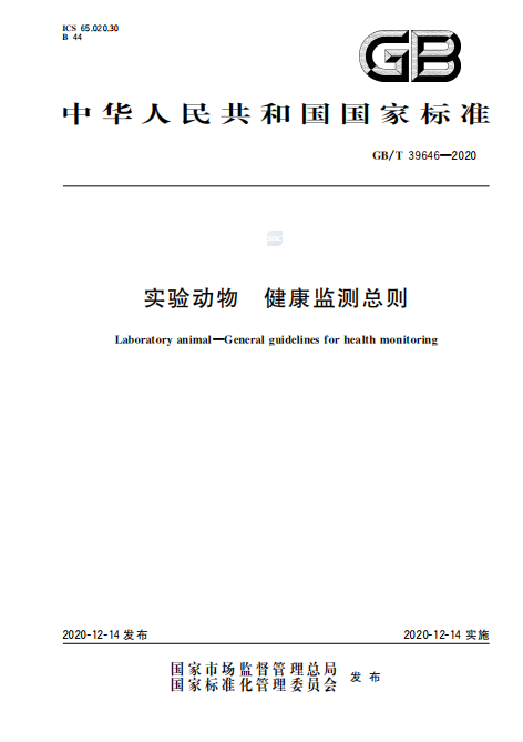 GB/T 39646-2020 实验动物 健康监测总则