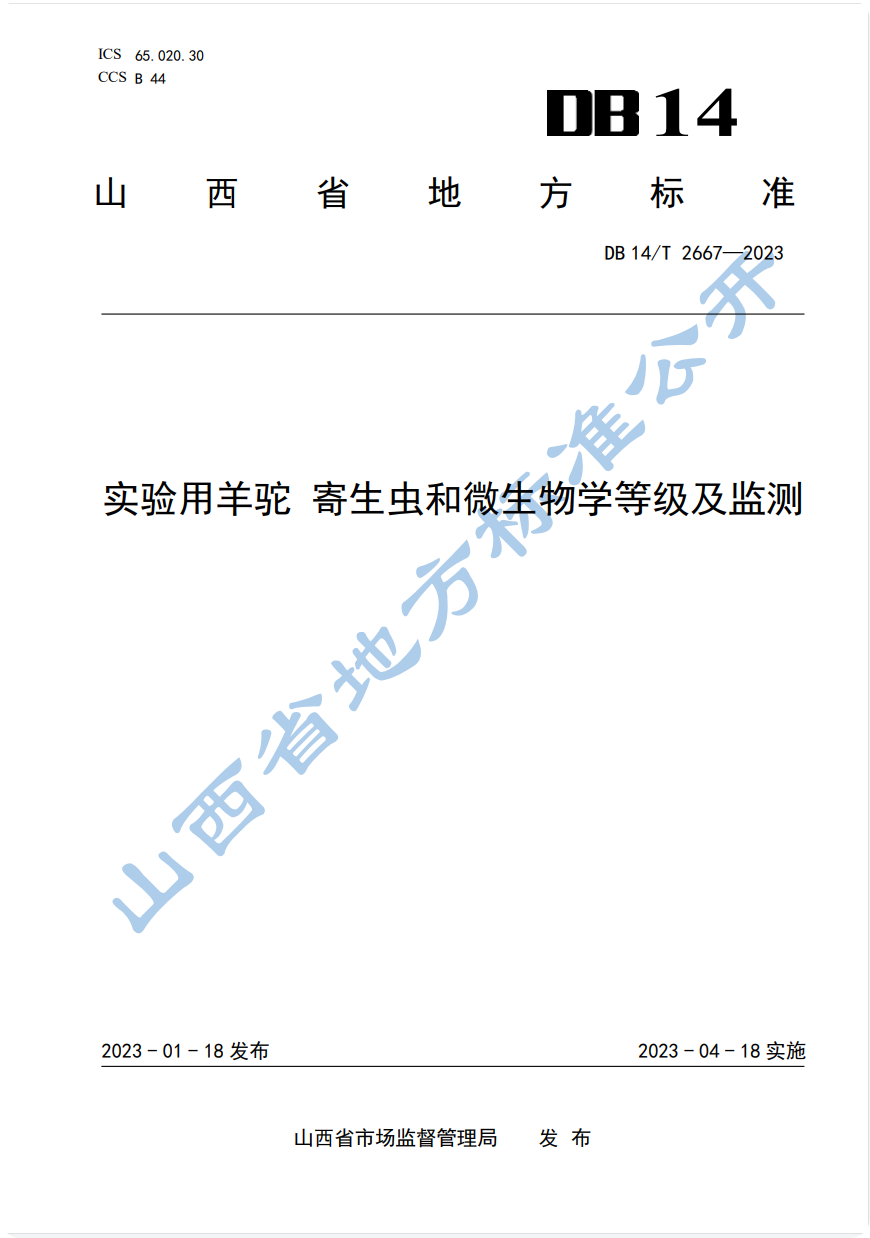 DB 14/T 2667-2023 实验用羊驼 寄生虫和微生物学等级及监测-实验动物中心
