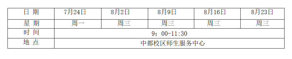 为方便学生办理人事档案相关事宜,拟订每周三上午9:00-11:30时在中都校区师生服务中心集中办理。