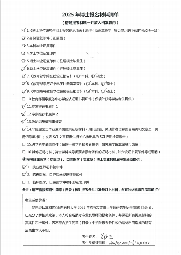 5.报考临床医学博士专业(专业型)或口腔医学博士专业(专业型)的往届考生须提交执业医师资格证、住院医师规范化培训合格证或主治医师及以上的职称材料;