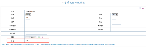2020级硕士研究生390≤CET-6<425分者需要在9月25日前在六级成绩提交界面“备注”栏填写“上课”或“不上课”,保存提交,未填写者默认上课。