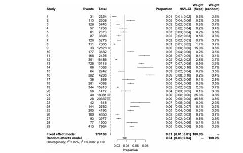图3AD患者性别患病率的meta分析森林和异质性检验