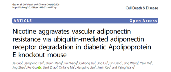 基础医学院王亚静课题组在尼古丁导致血管脂联素抵抗研究过程中取得重要进展