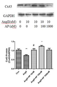 图1. Apelin-13和AngII对HL-1细胞Cx43表达的作用