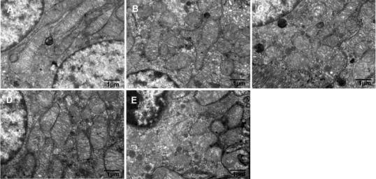 2.各组大鼠肾小管上皮细胞线粒体的透射电镜代表性图像