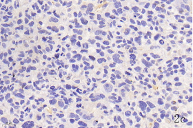 NDN(Necdin)属于黑色素瘤抗原(MAGE)家族,由60多个基因构成共享高度保守的MAGE同源结构域(MHD)[6,7]。最近几年的研究提出NDN是一种新的抑癌基因,其在卵巢癌[8]、乳腺癌[9]和黑色素瘤[10]等的组织和细胞系中低表达,过表达NDN可以抑制其生长,但NDN在骨肉瘤中的作用及机制尚不清楚。为探讨NDN在骨肉瘤中的作用及途径,我们收集了骨肉瘤患者的石蜡标本以及临床信息,对其进行了免疫组化检测及生存分析。通过对骨组织和骨肉瘤HE染色发现,骨组织组,骨密质呈板层状,陷窝中可见骨细胞呈梭形排列( 图1 a 1b) ;骨肉瘤组,瘤细胞呈多角形,核大深染,核分裂多见,瘤细胞呈车辐状排列,瘤细胞间可见少量肿瘤性骨质形成(图1c1d)。同时通过免疫组化发现,NDN表达主要位于细胞的胞核中。NDN在骨肉瘤组织中的表达率为29.4%(15/51)(图1c1d),明显低于瘤旁骨组织阳性表达率80%(8/10)(图1a1b)。