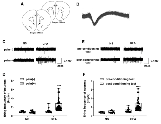 图2 CFA增加CFA大鼠ACC神经元放电活动。