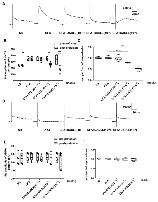 图5 DADLE抑制CFA大鼠ACC区NMDA电流幅度。