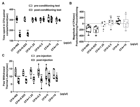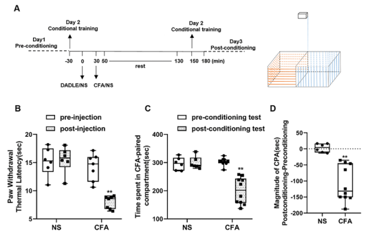 图3 DADLE缓解CFA大鼠的CPA反应。