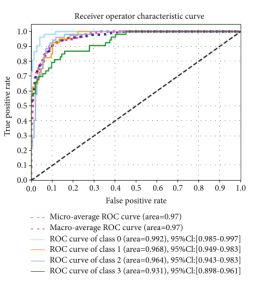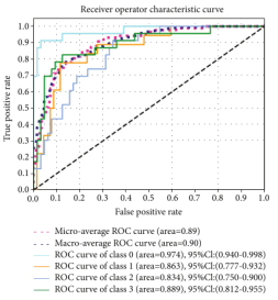COVID-19肺炎严重程度的分类采用SVM分类器进行分类,然后绘制各组的ROC曲线。最后,ElasticNet影像组学模型显示出良好的预测精准度,在训练集上获得了0.97的平均AUC性能,在测试数据集上达到0.90,表明基于CT的放射学模型在评估COVID-19肺炎的严重程度方面具有较强的效能。基于CT的影像组学模型能够有效评估COVID-19肺炎的分期,有助于缓解放射科医师的工作压力,提高病情评估的精准度。