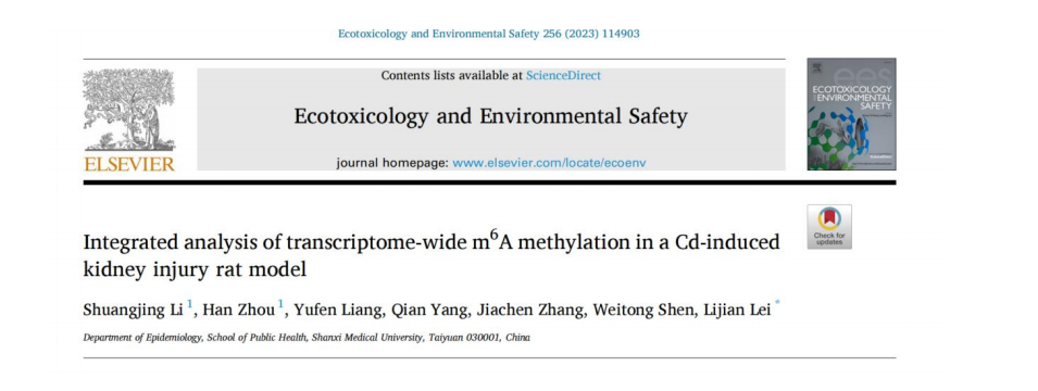 4 月 11 日,国产亚洲精品美女久久久_99久无码中文字幕一本久道_亚洲成AV人影院_亚洲AV影院一区二区三区 狠狠躁夜夜躁人人爽天天不卡_国产激情久久久久影院老熟女_精品性高朝久久久久久久公共卫生学院雷立健教授课题 组在 Ecotoxicology and Environmental Safety 在线发表题 为 “ Integrated analysis of transcriptome-wide m 6A methylation in a Cd-induced kidney injury rat model” 的论文。