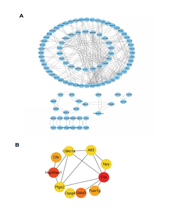 图 6. PPI 互作网络及关键基因