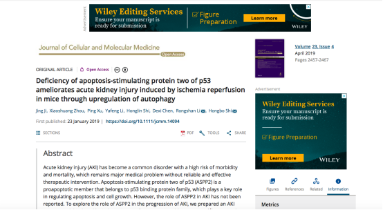 2019年1月28日,国产亚洲精品美女久久久_99久无码中文字幕一本久道_亚洲成AV人影院_亚洲AV影院一区二区三区 狠狠躁夜夜躁人人爽天天不卡_国产激情久久久久影院老熟女_精品性高朝久久久久久久附属人民医院肾内科李荣山教授团队在《细胞与分子医学杂志》(Journal of Cellular and Molecular Medicine)上发表了题为“Deficiency of apoptosis stimulating protein two of p53 ameliorates acute kidney injury induced by ischemia reperfusion in mice through upregulationofautophagy”(p53凋亡刺激蛋白2单倍体缺失通过上调自噬减轻缺血再灌注诱导的小鼠急性肾损伤)的研究成果。